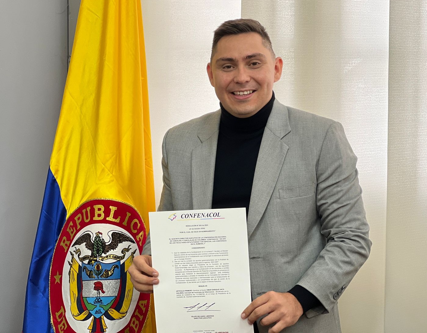 Omar Enrique Vaca Galindo, joven líder llanero, egresado de la Corporación Universitaria del Meta – UNIMETA del programa de Arquitectura y actual presidente del Concejo Municipal de Villavicencio, ha sido nombrado presidente de Asuntos Gubernamentales de la Confederación de Concejos y Concejales de Colombia CONFENACOL, organización que representa los intereses colectivos de los concejos y concejales ante el gobierno nacional.